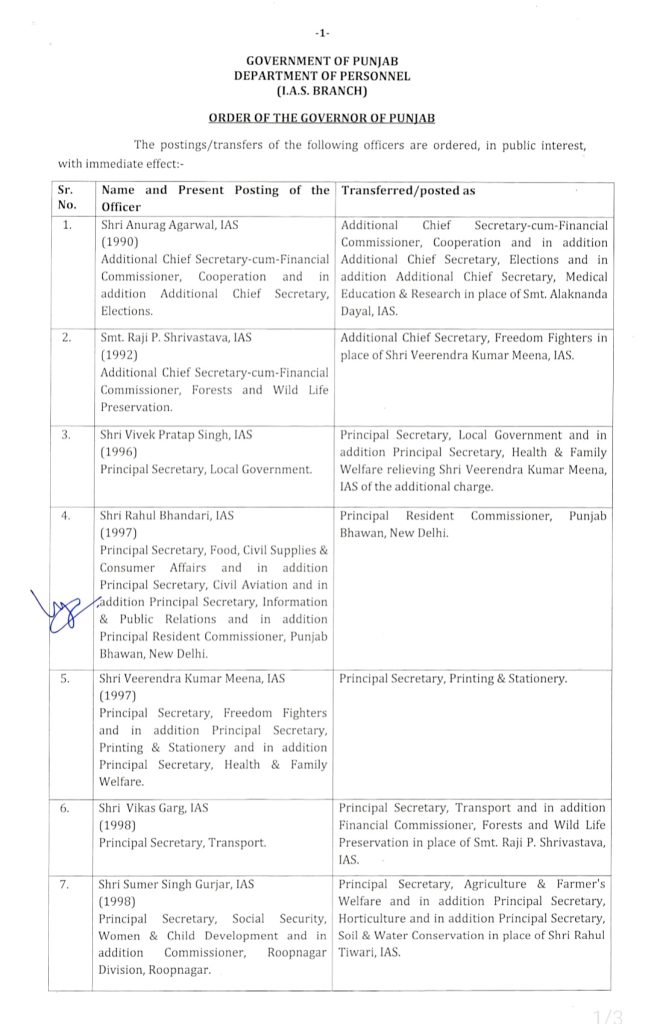 ਪੰਜਾਬ ਦੇ 16 ਆਈ.ਏ.ਐਸ ਅਤੇ 3 ਪੀ.ਸੀ.ਐਸ ਅਫ਼ਸਰ ਬਦਲੇ